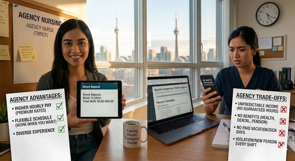 Agency nursing in Canada looks great from the outside. Higher hourly pay. Flexible scheduling. The ability to pick up shifts when you want.